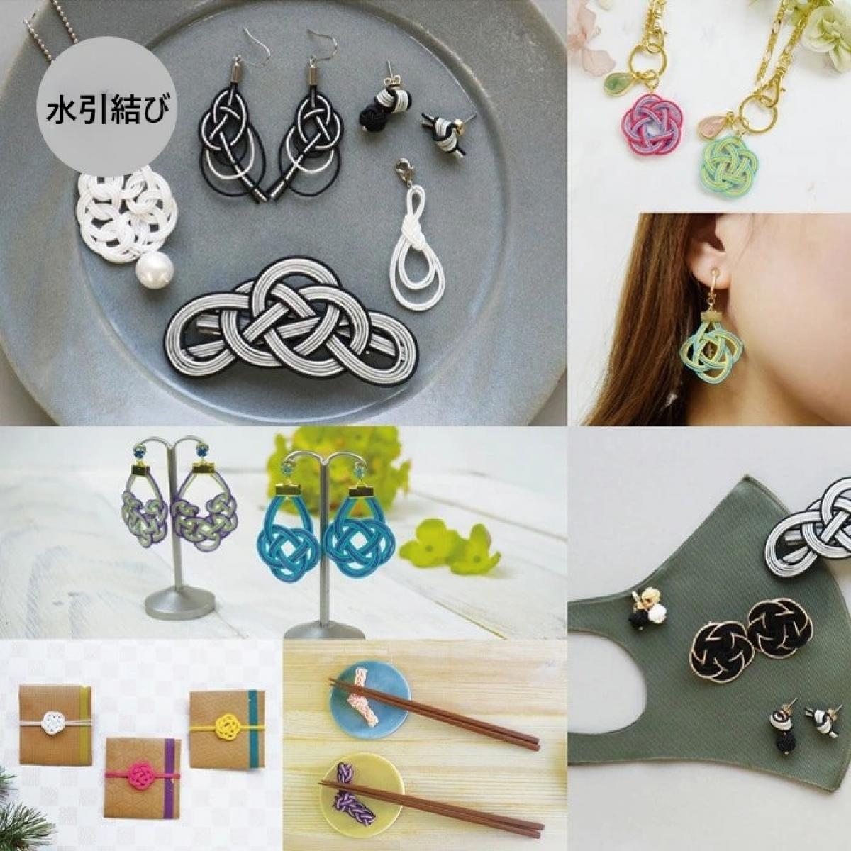 水引で作られるアクセサリーや飾りは、その細やかな技術と思いがこもっています。